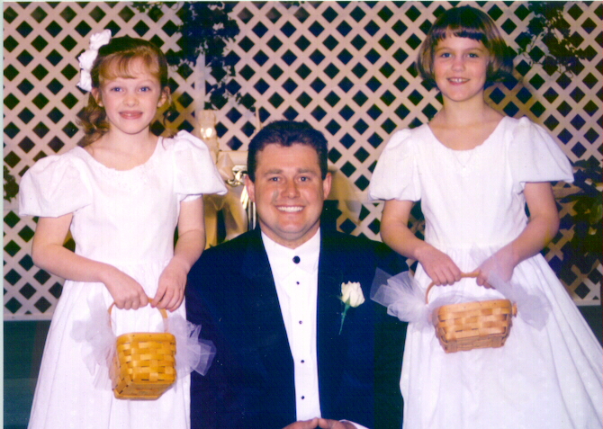 Flower girl at Matt and Rachael's wedding checks to see if she missed a spot
